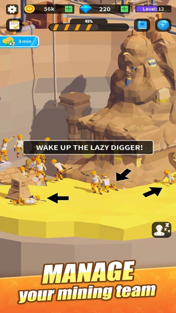 考古挖掘模拟是超级佛系的游戏!休闲游戏!完美的时间杀手! 精美清新的动画和低多边形3D图形 三张精心设计的专题图等您探索 自动挖掘 即使在睡觉时也要获得闲置的金币!