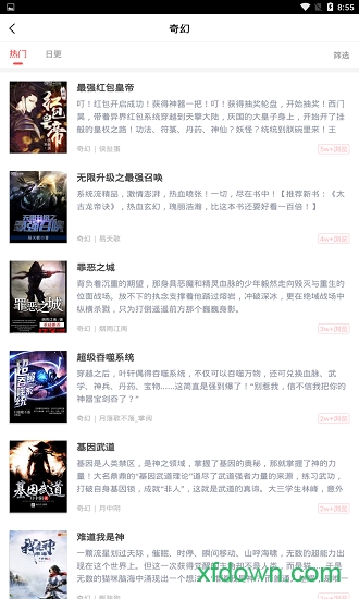 4、玄幻、都市、言情、武侠、科幻、军事、职场励志,应有尽有;