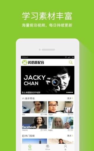 1、全新方式:摆脱枯燥的传统学习方式,走进轻松又好玩的配音学习社区,跟随我们的精选推送,通过配音来学习英语、提高口语。早晚练一篇,口语屌炸天!