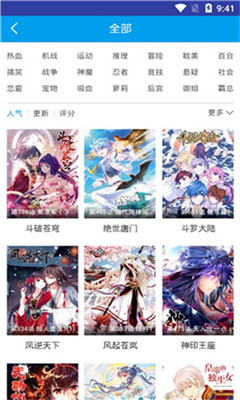 1、超多类型漫画随心看,涵盖热血、校园、爱情、恐怖、霸总、耽美、古风等十多种漫画题材