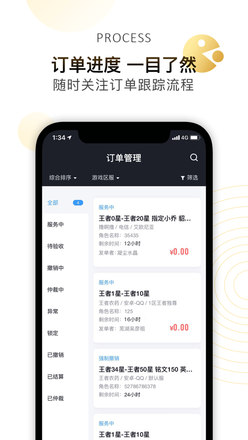提供接单代练、发布订单、充值提取、订单管理等多种功能;